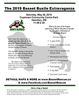 Do the Bustle! The Bustle will kick-off on Saturday May 25 at the Copetown Community Centre’s lush, fenced in park. All of the bassets will bustle into the park in one very long (and very short!) Basset-line, led by the official 2019 AmBassetor. And that is just the beginning! Along with a day of mixing and mingling with the wonderful Bassets and their amazing people we have a full day of doggy-fun and awesome events. From our not-to-be missed Basset Costume contest, best trick contest, best howl, longest ears and many more games and contests to our paw-dicure nail trimming, HUGE raffle, exclusive BHRO merchandise, fabulous BBQ and so much more, you are in for a day of fun you won’t forget.